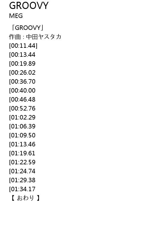 | [01:46.16][00:13.44] | ブレーキ 突然の ポーズ、甘いの グルーヴ |