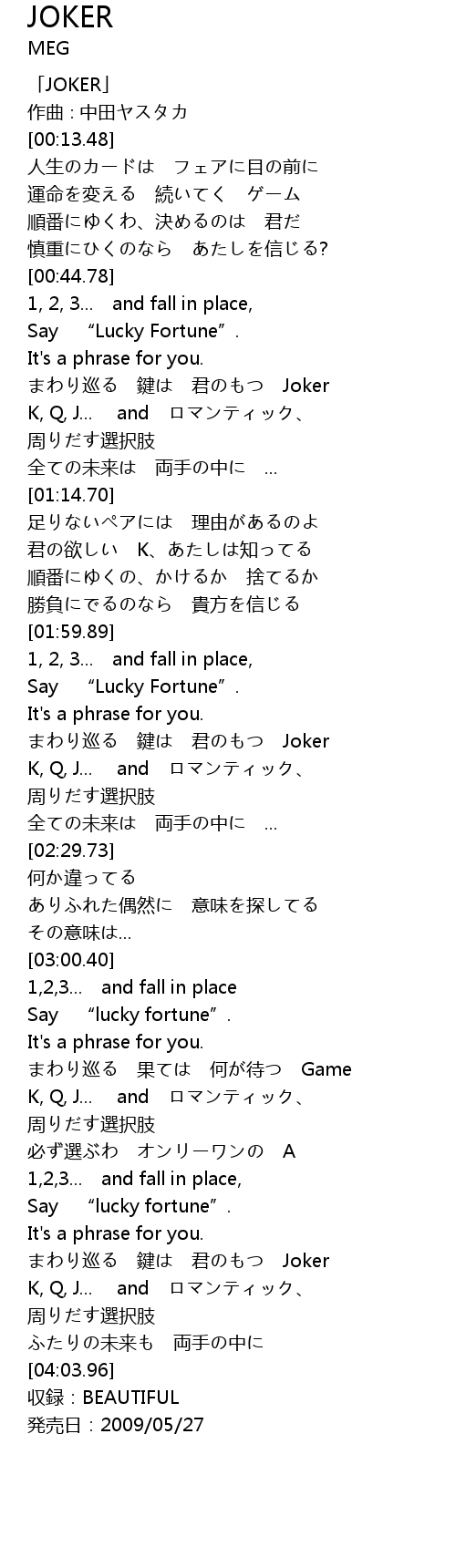 | [00:52.53] | まわり巡る 鍵は 君のもつ Joker |