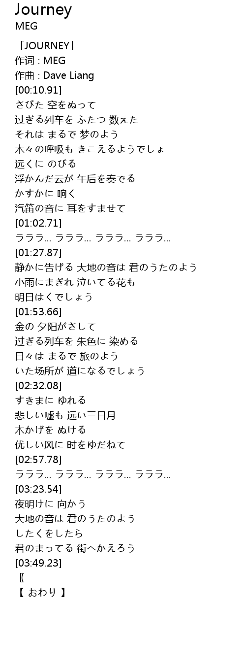 | [03:30.56] | 大地の音は 君のうたのよう |