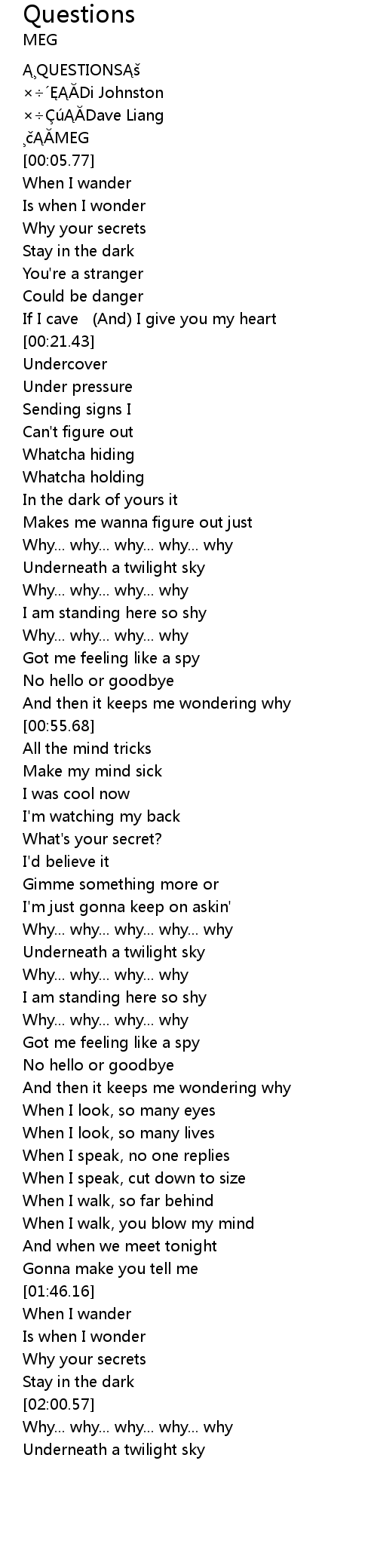 | [00:01.77] | QUESTIONS |