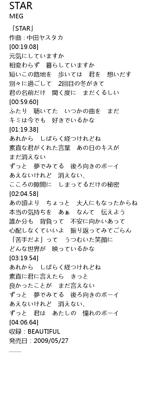 | [04:09.64] | shōu lù: BEAUTIFUL |