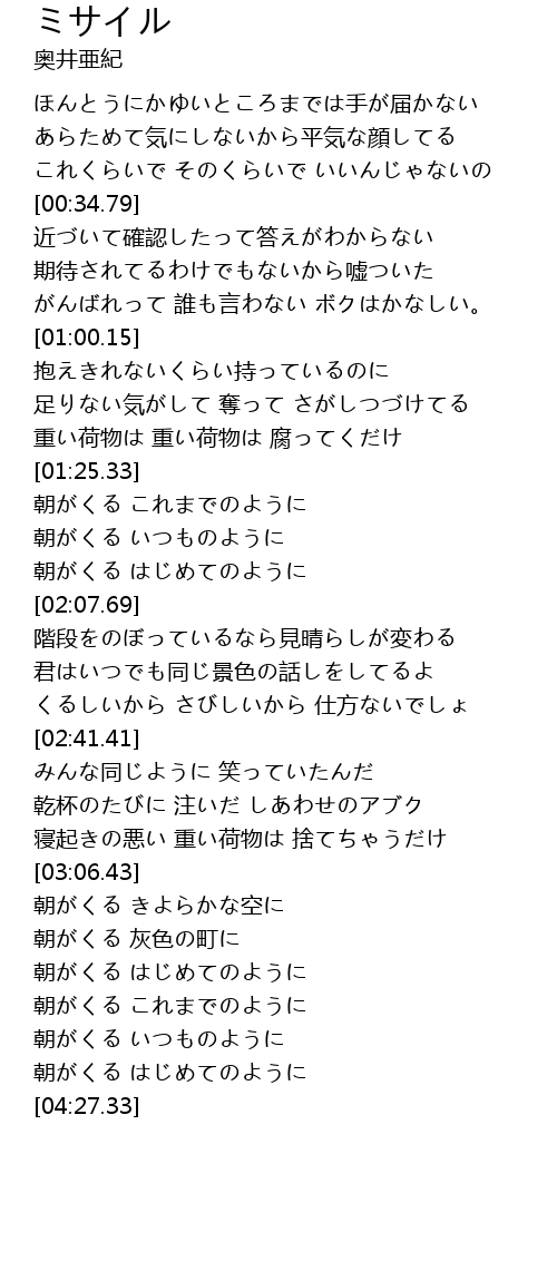 | [03:39.69] | 朝がくる はじめてのように |