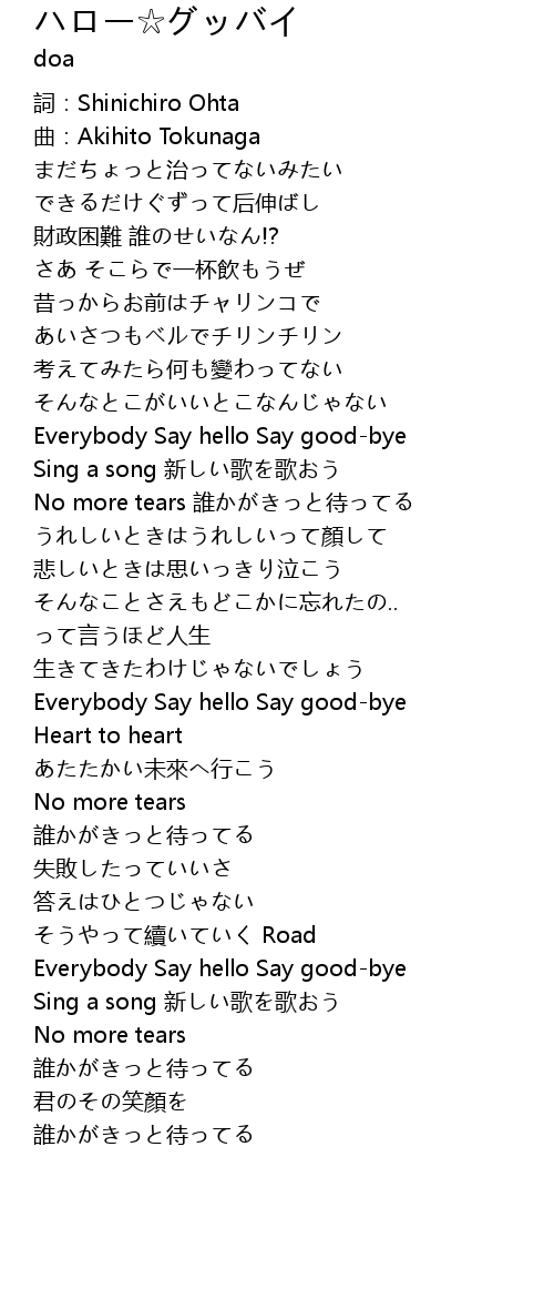 | [02:34.45] | Everybody Say hello Say goodbye |
