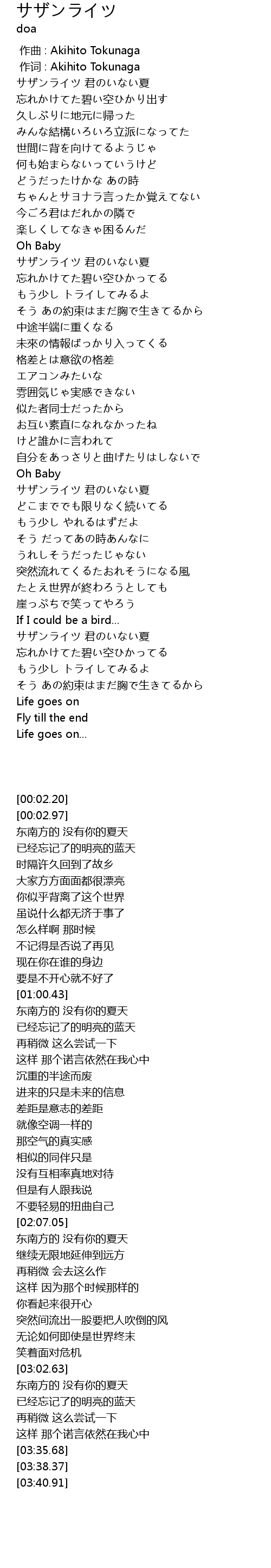 | [03:13.09] | サザンライツ 君のいない夏 |