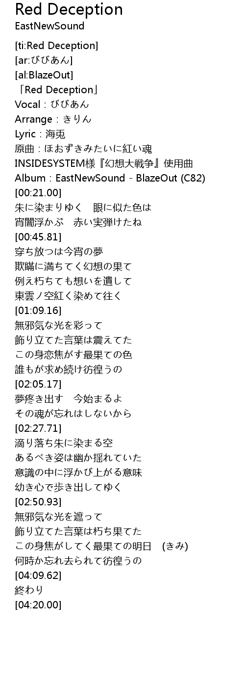 | [00:00.00] | 「Red Deception」 |