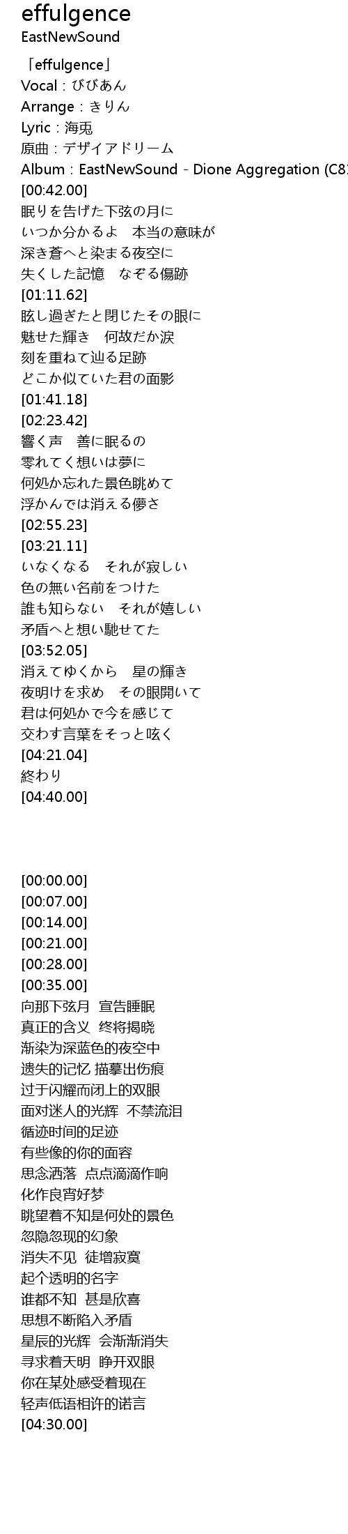 | [00:35.00] | Album:EastNewSound - Dione Aggregation (C81) |