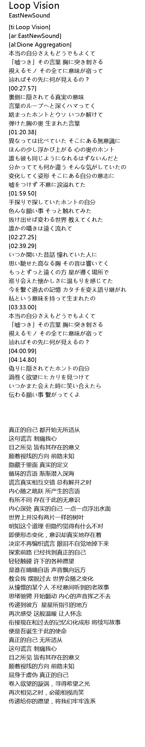| [01:00.44] | 言葉のループへと深くハマってく |