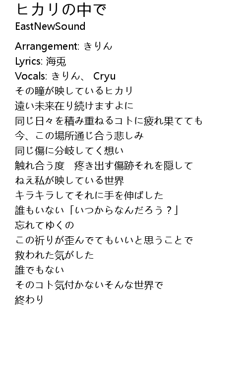 | [00:05.92] | Vocals: きりん、 Cryu |