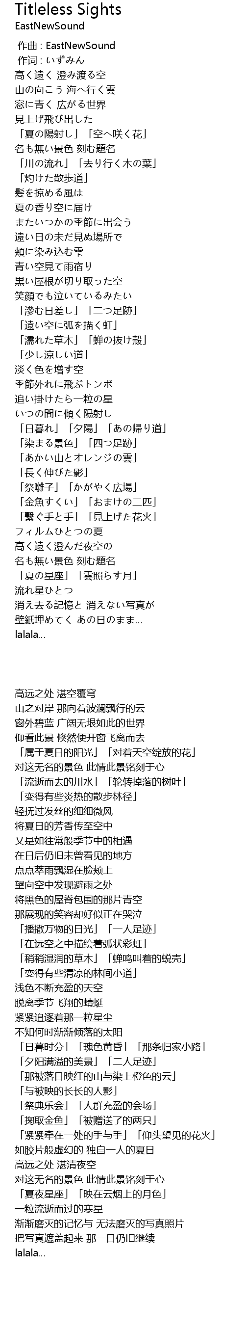 | [05:03.000] | 名も無い景色 刻む題名 |