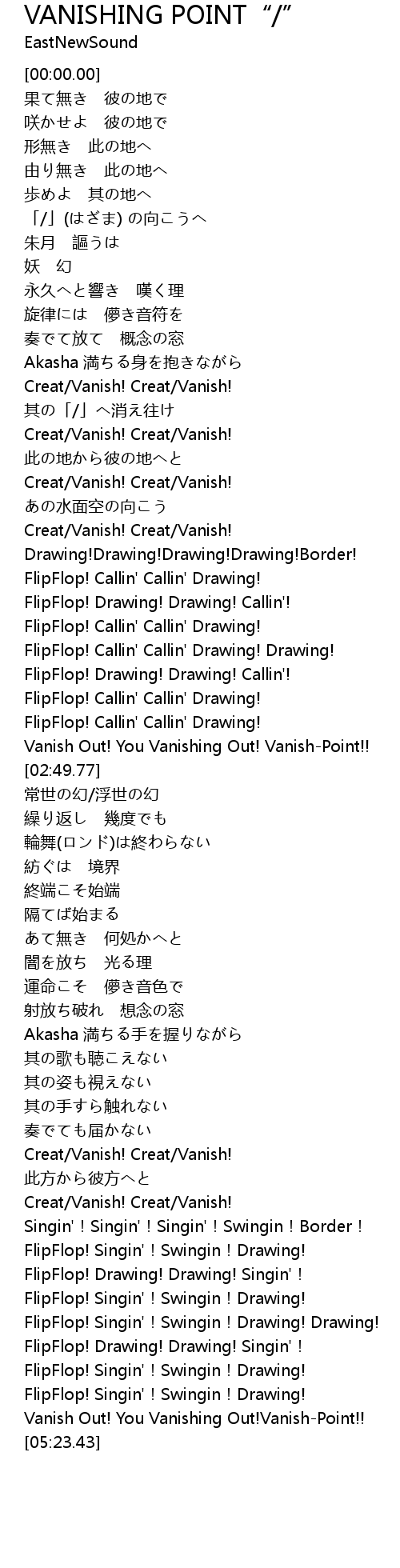 | [05:19.54] | Vanish Out! You Vanishing Out!Vanish-Point!! |