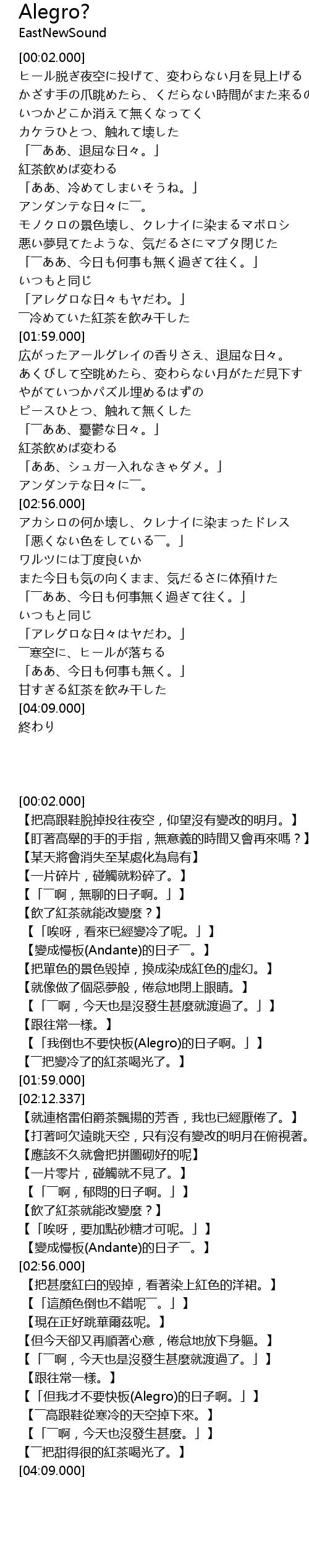 | [03:53.542] | 「アレグロな日々はヤだわ。」 |