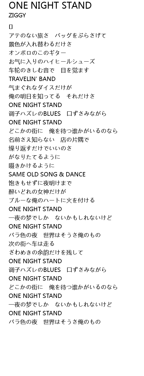 | 歌曲 | ONE NIGHT STAND |
