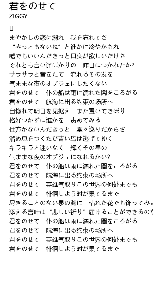 | 君をのせて 英雄气取りこの世界の何处までも | |