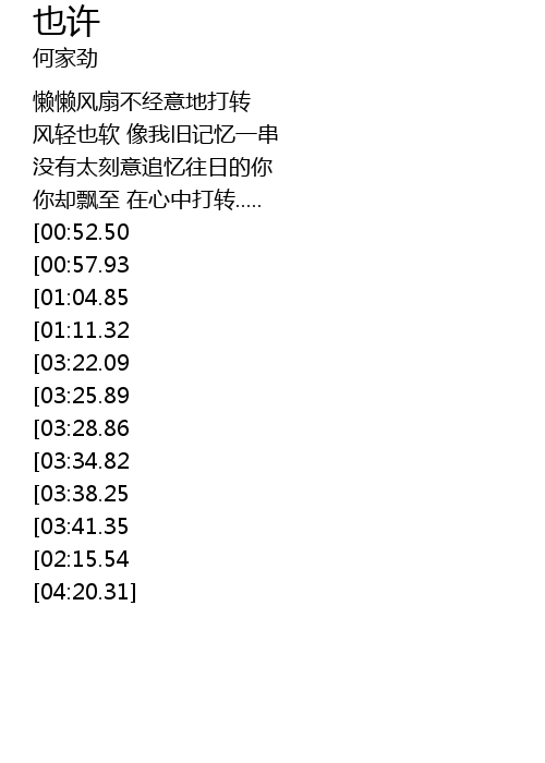 [03:47.62][03:22.09][01:49.22][01:23.17] 也许当天的痴未完