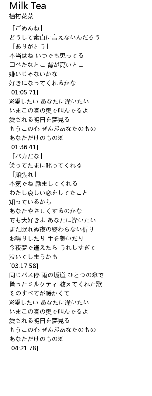 | [03:34.12] | 貰ったミルクティ 教えてくれた歌 |