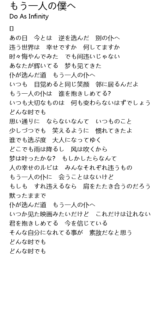 | もう一人の仆に 会うことはないけど | |