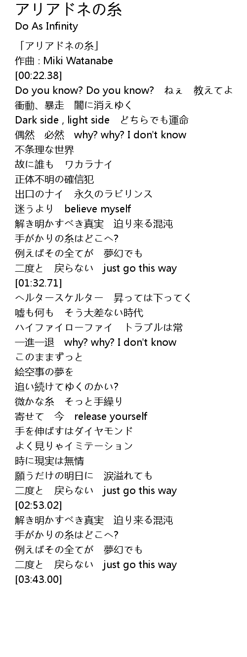 | [00:58.56] | 出口のナイ 永久のラビリンス |