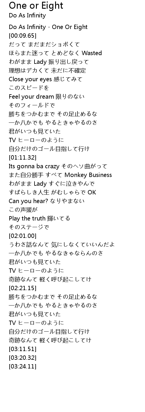 | [00:00.00] | Do As Infinity One Or Eight |