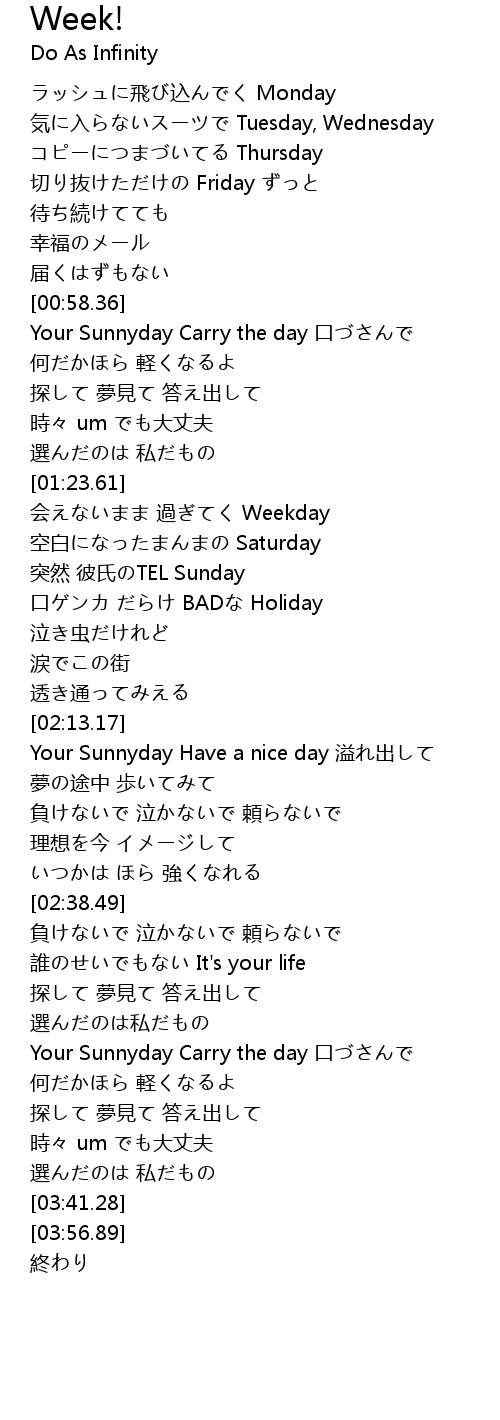 | [02:14.14] | Your Sunnyday Have a nice day 溢れ出して |