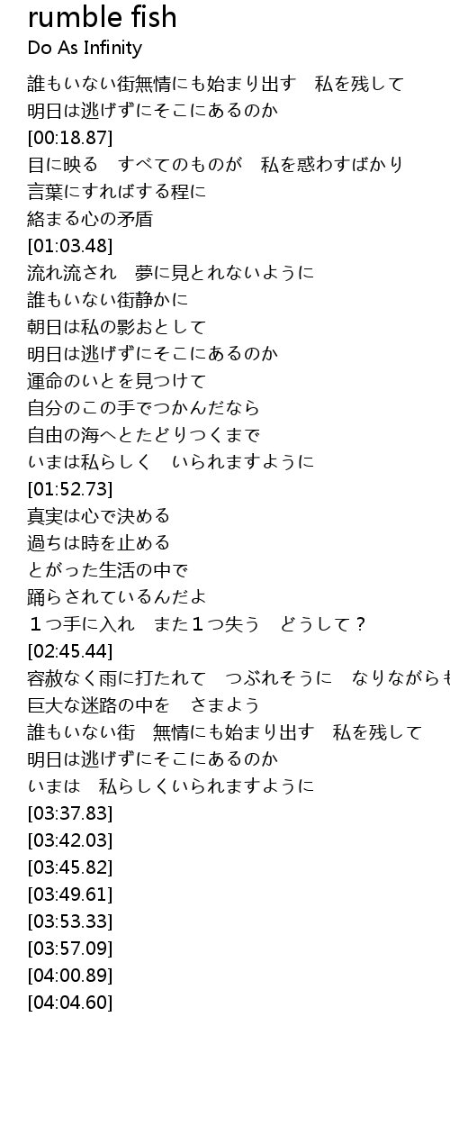 | [00:33.37] | 目に映る すべてのものが 私を惑わすばかり |