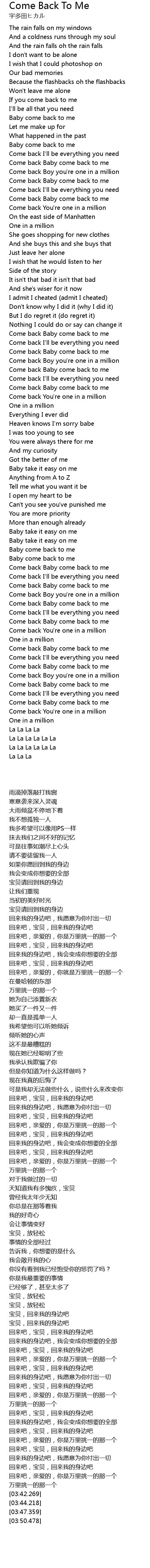 | [03:04.418] | Come back Baby come back to me |