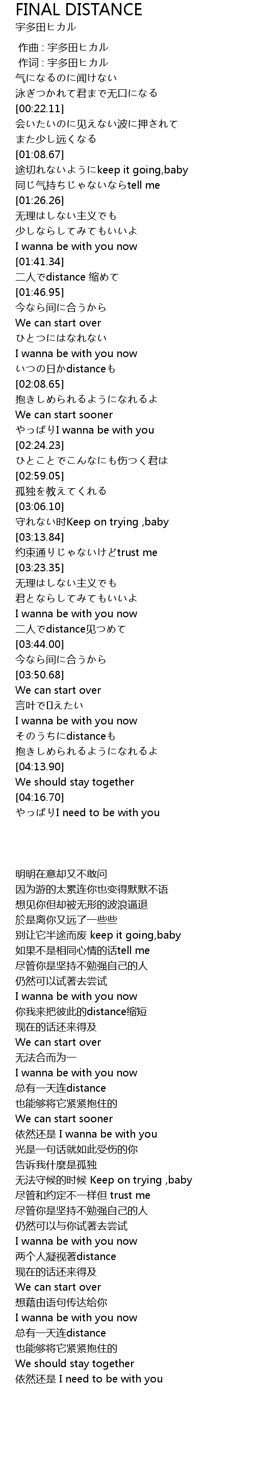 | [00:01.00] | 作词 : 宇多田ヒカル |