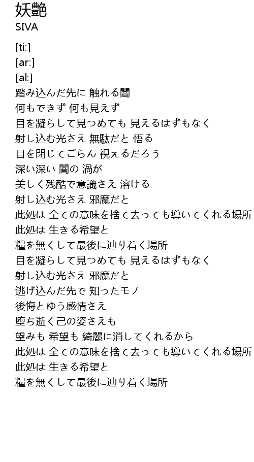 | [00:38.11] | 踏み込んだ先に 触れる闇 |