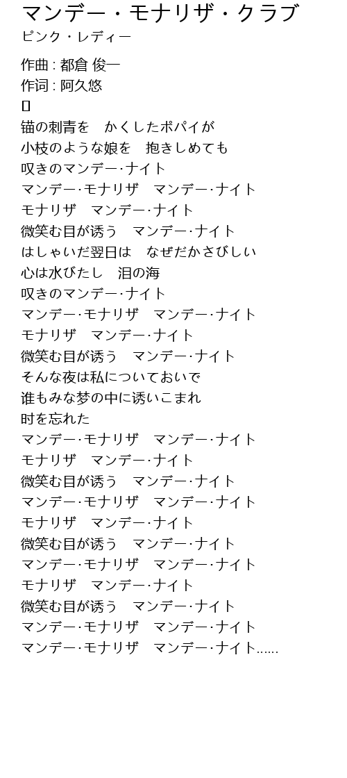 マンデー・モナリザ マンデー・ナイト……