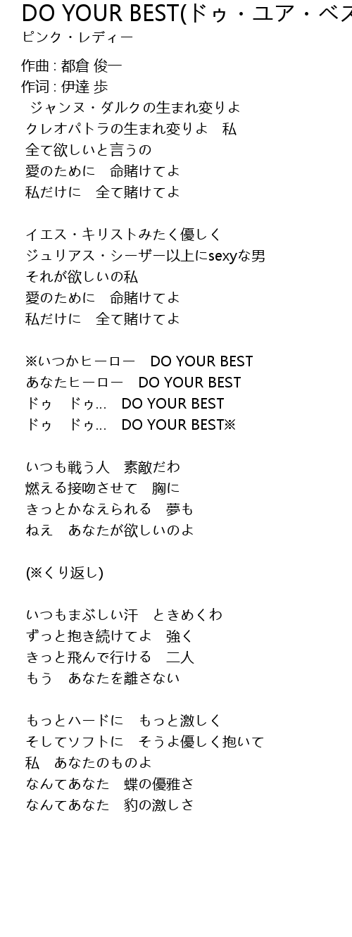 DO YOUR BEST(ドゥ・ユア・ベスト) 歌词