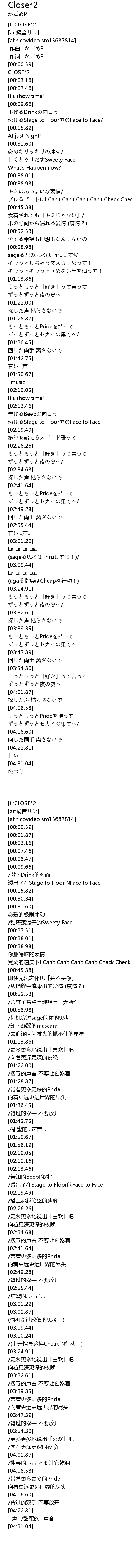 | [00:42.01] | ブレるビートにI Can't Can't Can't Can't Check Check/ |