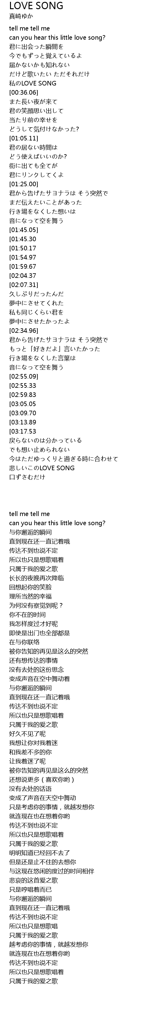 | [04:03.80][02:04.37] | 私のLOVE SONG |