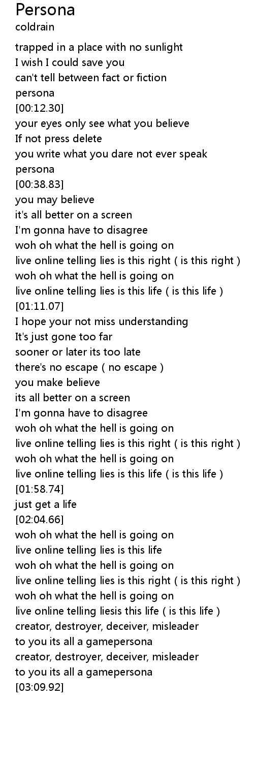 | [01:03.89] | live online telling lies is this life(is this life) |