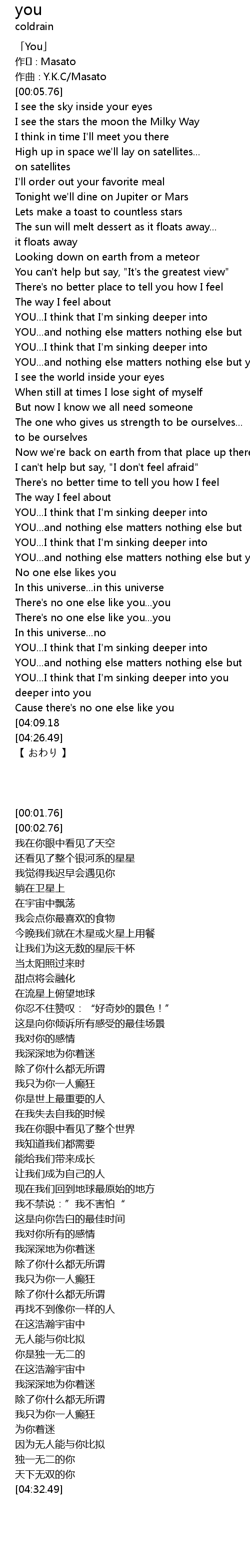 | [02:28.45] | YOU... and nothing else matters nothing else but you |