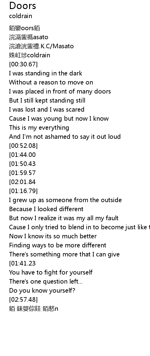 | [02:52.31][01:59.57][01:11.52] | To be true inside |