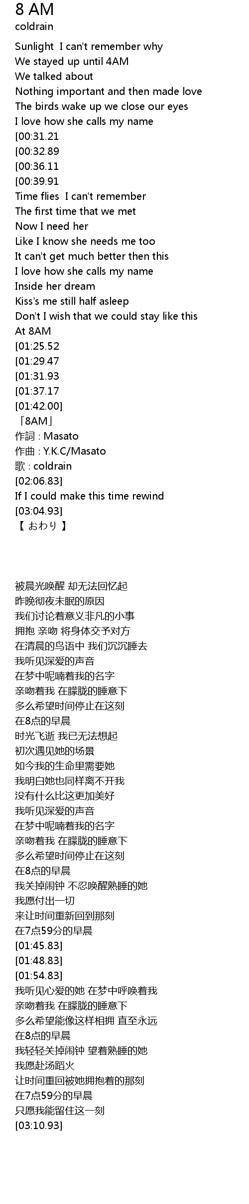 | [02:23.10][01:25.52] | I stop the alarm to watch her sleep |