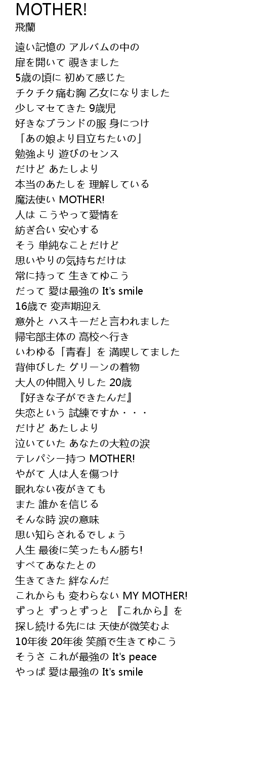 | これからも 変わらない MY MOTHER! | |