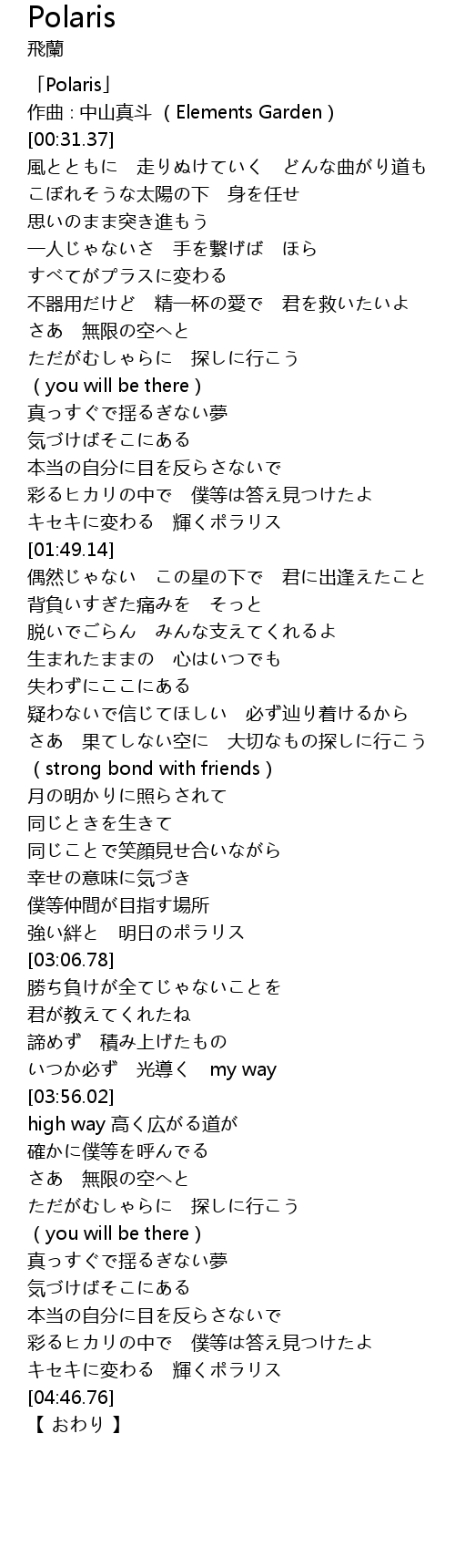 | [04:38.50] | キセキに変わる 輝くポラリス |