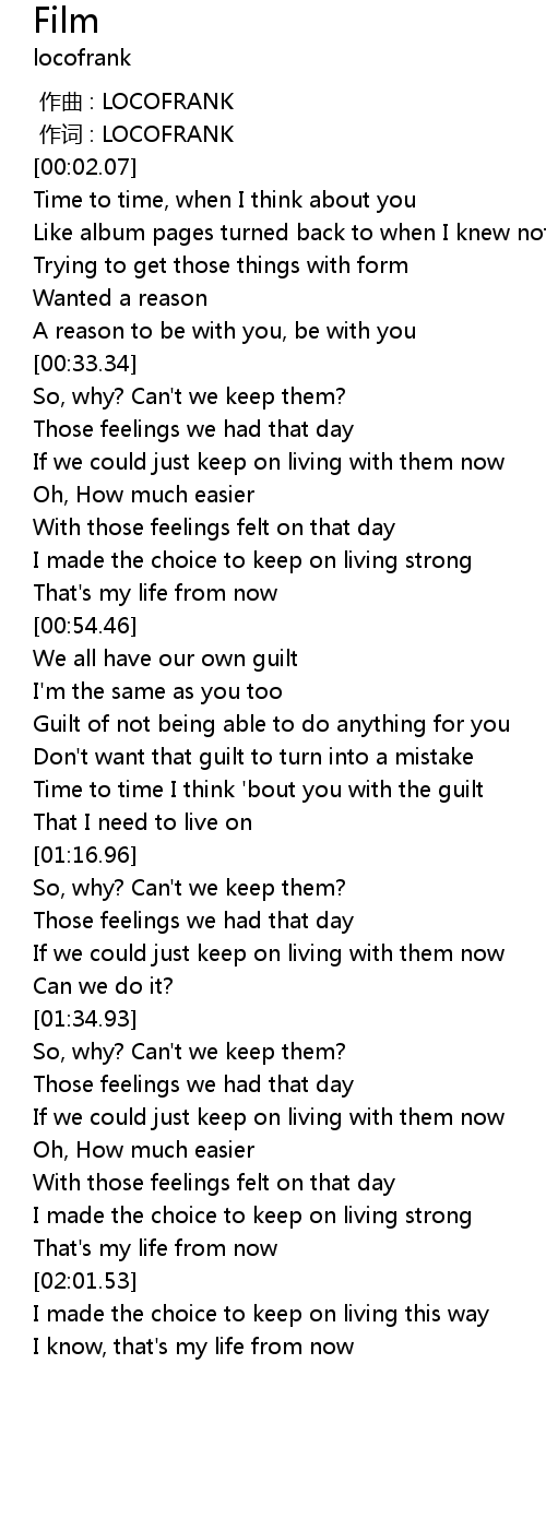| [00:00.00] | zuo qu : LOCOFRANK |