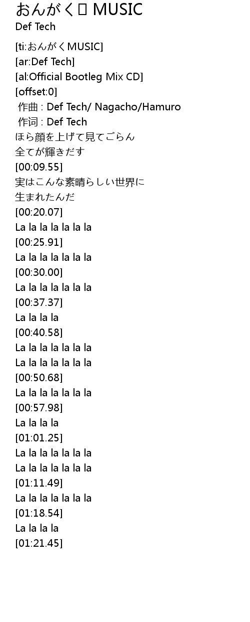 | [00:00.00] | zuo qu : Def Tech Nagacho Hamuro |