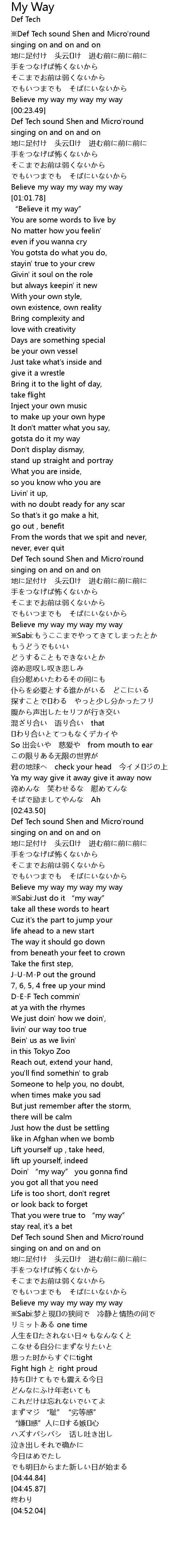 | [03:06.65] | ※Sabi:Just do it “my way” |