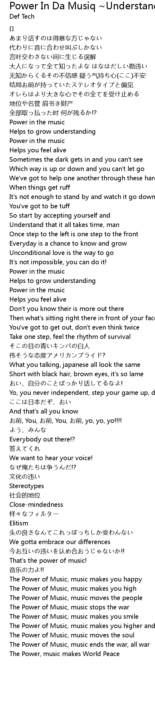 | 歌曲 | Power In Da Musiq ~Understanding |