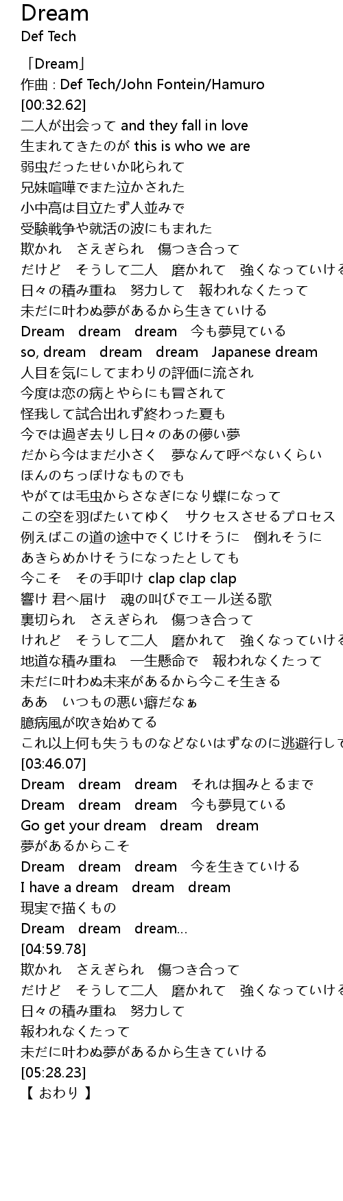 | [01:49.22] | so, dream dream dream Japanese dream |