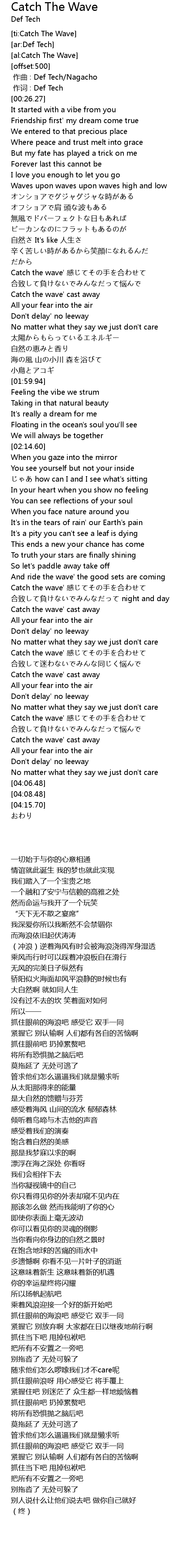 | [03:44.60] | Catch the wave' gǎn shǒu hé |