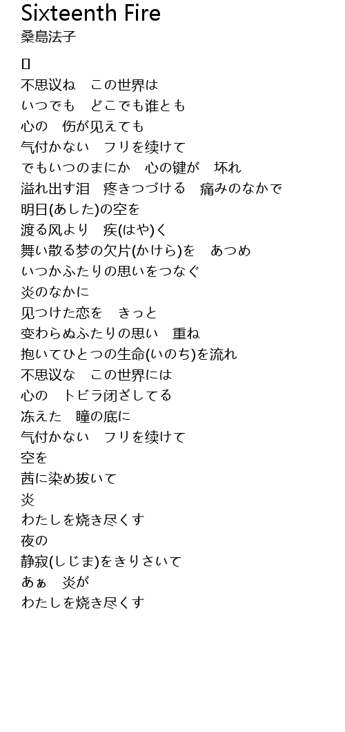 | 歌曲 | Sixteenth Fire |