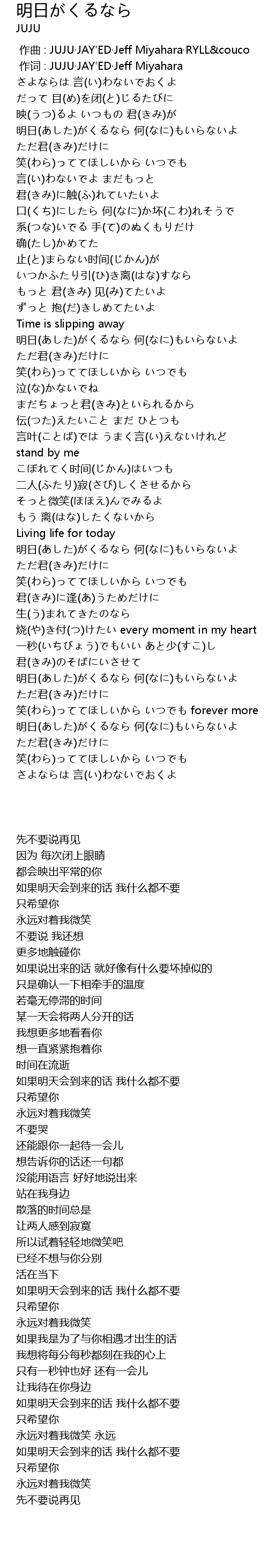 | [00:01.00] | 作词 : JUJU·JAY'ED·Jeff Miyahara |