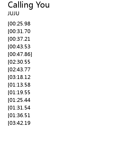 | [03:42.63][02:30.55][00:48.58] | I am calling you |