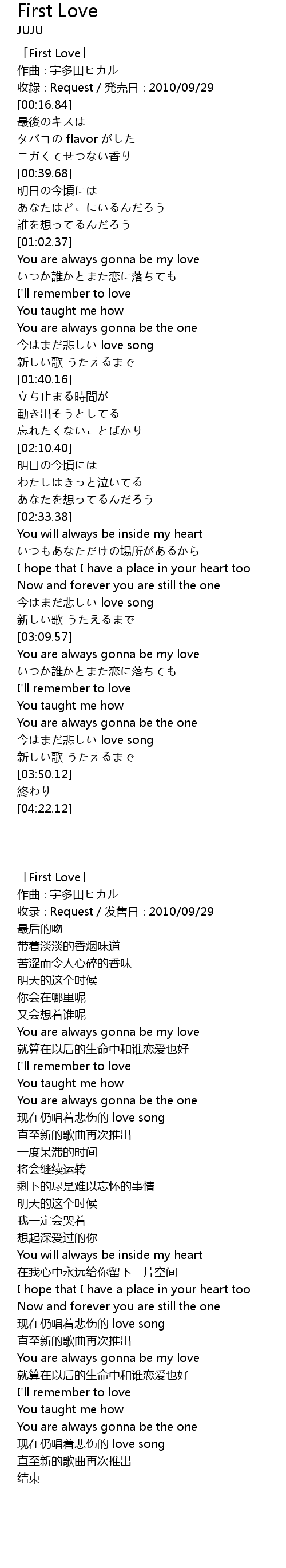 | [00:06.84] | 作曲∶宇多田ヒカル |