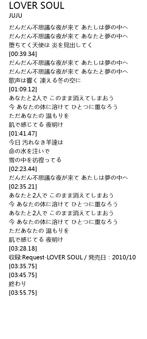 | [03:30.75] | shou lu: RequestLOVER SOUL fa mai ri: 2010 10 |
