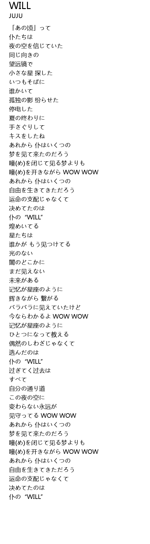 瞳(め)を开きながら WOW WOW |