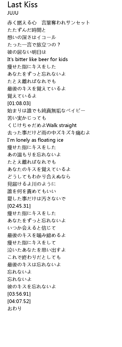 | [03:03.65] | 最後のキスを噛み締めるよ |